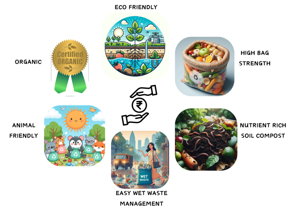 Let’s spark the movement with biodegradable & compostable bags for managing food waste, empowering every Indian household to lead us into a greener future.