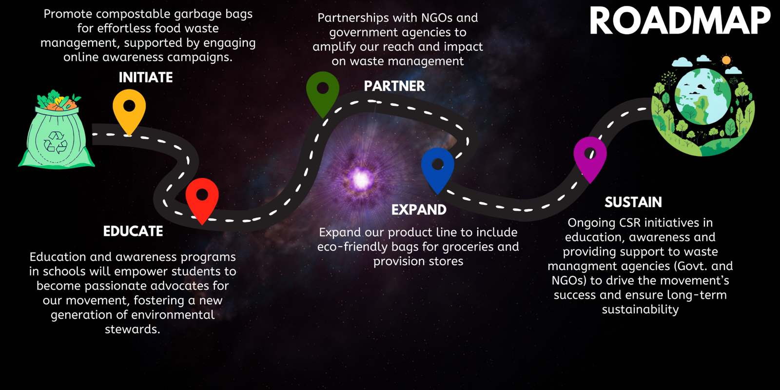 Our mission is To make a real difference in how we manage waste. By introducing compostable bags designed for easy food waste disposal, we’re tackling plastic pollution head-on. But that’s not all. We’re passionate about spreading the word through vibrant education and awareness programs at Schools and Communities. And we’re not alone—our partnerships with NGOs and government agencies amplify our reach and impact. Together, we’re not just reducing plastic waste; we’re paving the way for a cleaner, greener future. Join us in this exciting journey to protect our planet and inspire change!